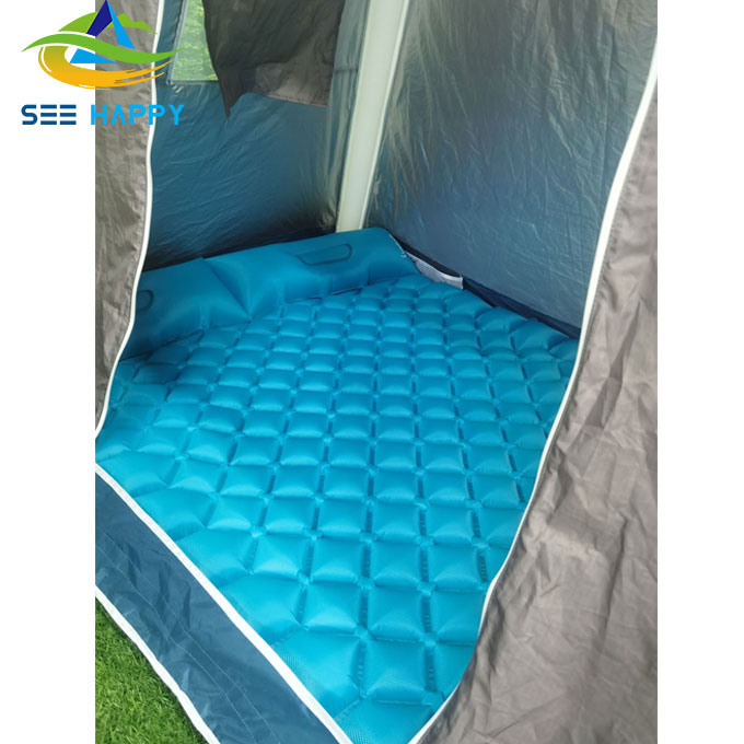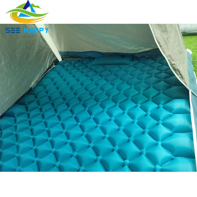 Het opblaasbare slaapmatje is een lichtgewicht en gemakkelijk te dragen slaapmatje dat sterke ondersteuning en een comfortabele slaap biedt tijdens het verkennen in de buitenlucht of op de camping. Het opblaasbare slaapmatje is gemaakt van hoogwaardige materialen, die zacht en comfortabel, waterdicht en scheurbestendig zijn. De slaapmatten zelf zijn verkrijgbaar in verschillende diktes en maten om tegemoet te komen aan verschillende lichaamsvormen en behoeften. Het heeft ook meerdere airbags waarmee gebruikers de stevigheid en hoogte eenvoudig kunnen aanpassen voor de meest comfortabele slaapervaring. Opblaasbaar slaapmatje is een slaapmatjeproduct dat zich richt op draagbaarheid. Hij kan gemakkelijk worden opgeborgen en is net zo licht als een gewone slaapzak, waardoor je hem gemakkelijk in een rugzak kunt gooien en mee kunt reizen zonder al te veel ruimte in beslag te nemen of extra gewicht toe te voegen. Opblaasbaar slaapmatje is ook geschikt voor verschillende buitenomgevingen. Of het nu op stenen grond, modder of zand is, het kan gebruikers stabiele ondersteuning bieden en het comfort van gebruikers tijdens buitenactiviteiten verbeteren. Opblaasbaar slaapmatje is een lichtgewicht, duurzaam en gemakkelijk te dragen slaapmatje. Niet alleen geschikt voor buitenavonturen, kamperen of wandelen, maar ook geschikt voor opblaasbaar gebruik thuis tijdens het slapen of rusten in de sportschool. Dankzij een geavanceerd ontwerp en geavanceerde materialen kunt u buiten de meest comfortabele slaapervaring beleven.