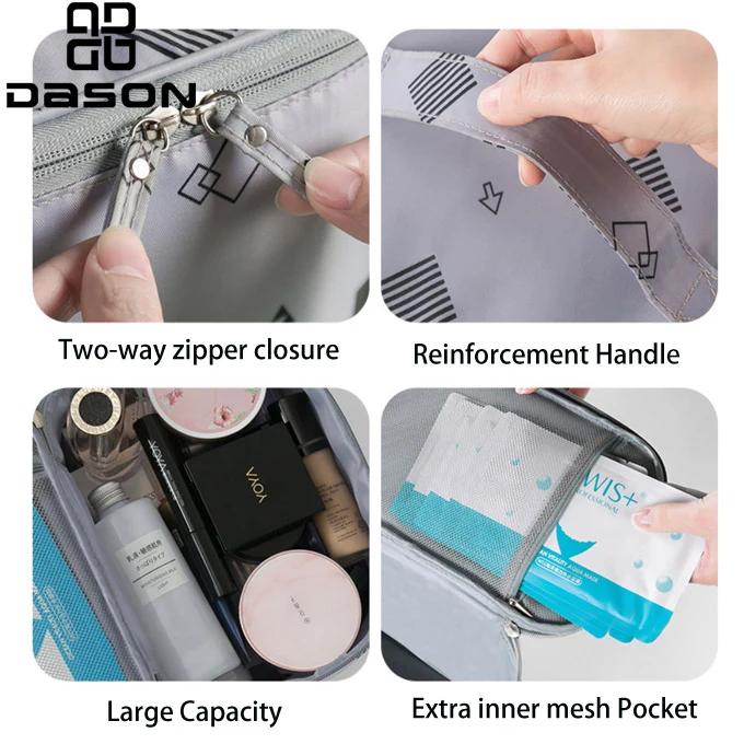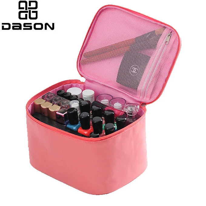 Het is een eenvoudige en traditionele make-up treinkoffer; Materiaal zo veel om uw markt te vangen, zoals waterdicht-oxford, pu-leer, glanzend pvc ect.