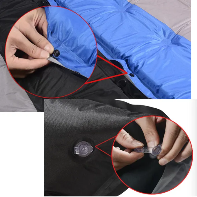 Het opblaasbare slaapmatje gemaakt van 75D zachte stof, duurzaam en waterdicht; Het kan lekkage voorkomen; Waterdicht, scheur- en lekbestendig, waardoor u overal in de buitenlucht comfortabel kunt slapen