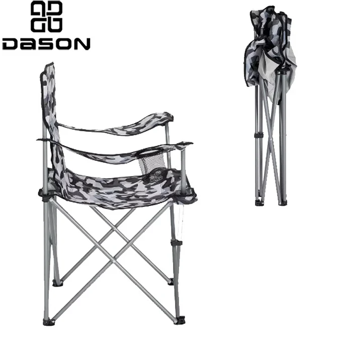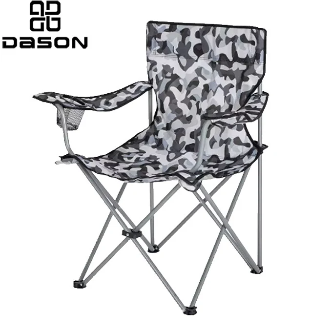Het hoofdgedeelte van de stalen klapstoel is gemaakt van duurzaam 600D polyester met verschillende digitale bedrukkingen in camo-ontwerp